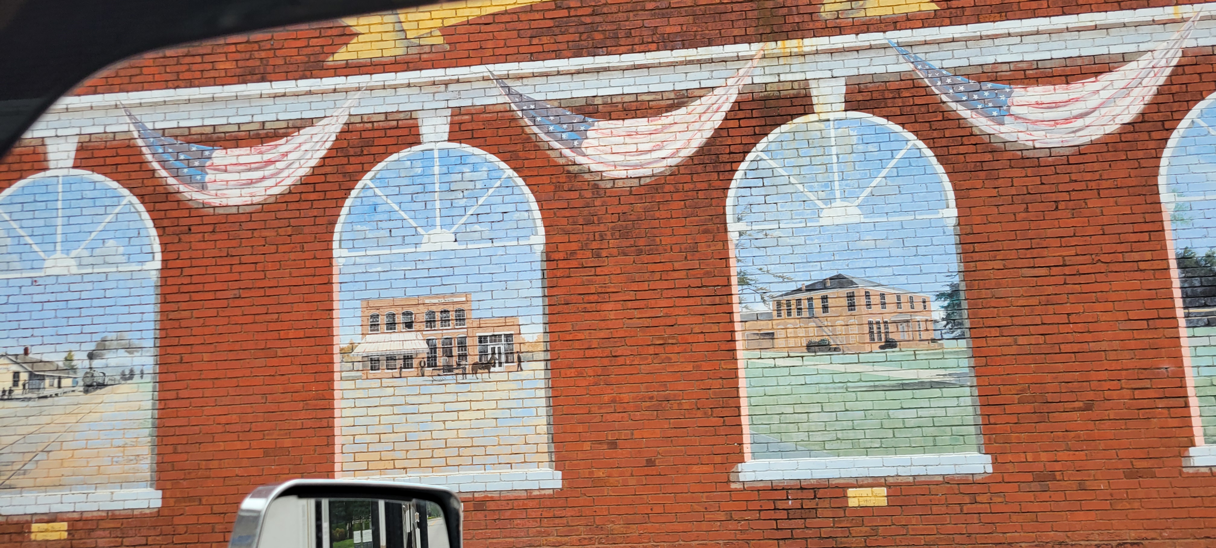 Old Fort is named for the original “old fort” that was established there prior to the Revolutionary War, called “Davidson's Fort.” The mountain ridge between Old Fort and Black Mountain was at that time the boundary between land available for immigrant settlement to the east and Cherokee territory to the west. The first mural I saw in town was "A Time To Build." It was originally created by local artist, Nada Carroll. The original hangs in the Old Fort Town Hall. Mrs. Carroll inspired members of the Arrowhead Gallery and Studios to produce their interpretation of her vision, creating Old Fort's first outdoor mural.