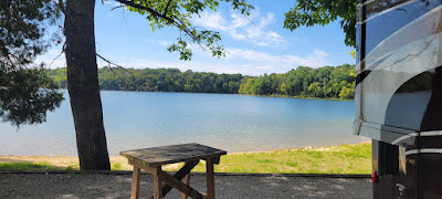 Charlie and I enjoyed the cool breeze off the lake and the shade that our site provides. He started getting "thirsty" so we headed over to Papa Turney's for drinks, dinner and a great show!